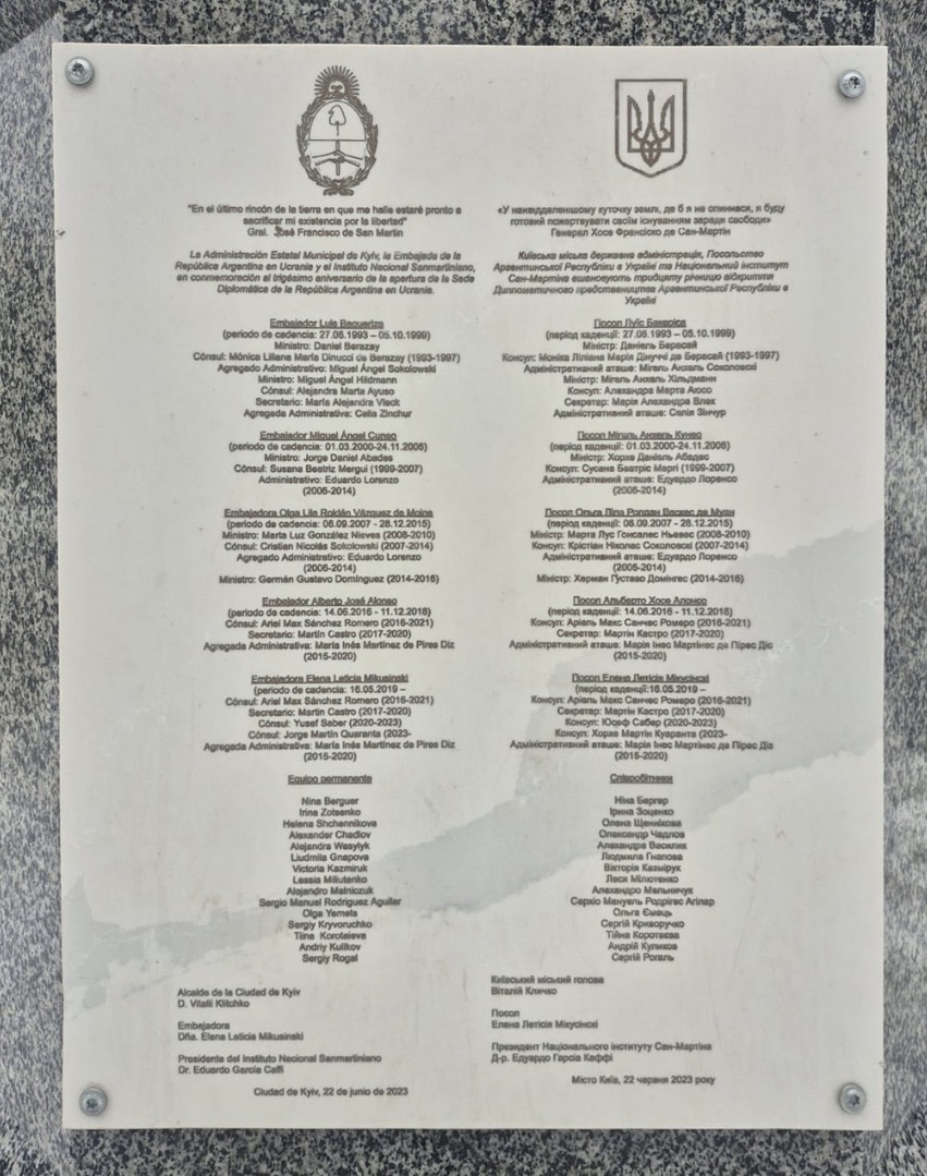 En el 248° aniversario del natalicio del Gral. José Francisco de San Martín, la Embajada de la República Argentina en Ucrania rinde homenaje al Padre de la Patria, artífice de la independencia y símbolo eterno de patriotismo, libertad y emancipación.